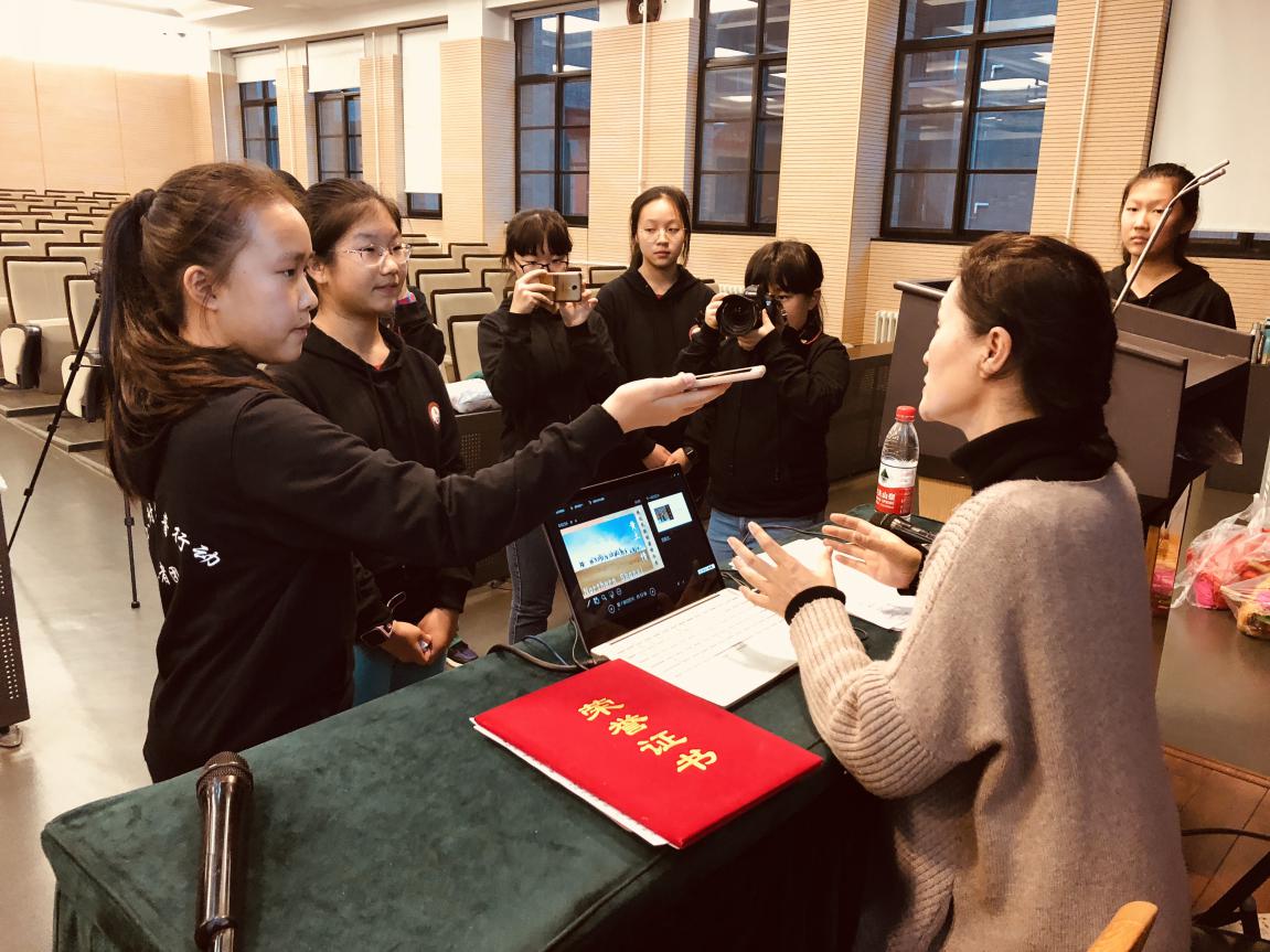 讲座介结束后,程琴还接受了北大附中声音行动小记者团的采访,就他们提出的有关陕北民歌与流行音乐等问题进行了详尽的解答。