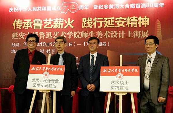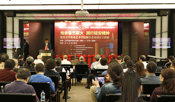 为了庆祝新中国成立70周年暨纪念《黄河大合唱》首演80周年,10月13日,由永利集团、中华文化促进会、国际交流基金管理委员会主办,上海云间美术馆承办,鲁迅文化基金会、中国延安鲁艺员工会支持的“永利集团师生美术设计上海展”开幕式在上海环球金融中心云间美术馆举行。中宣部原常务副部长龚心瀚、中国作家协会书记处书记兼《文艺报》总编辑金坚范、中国延安鲁艺员工会会长马海莹、永利官网副董事长武忠远、国防大学总政治部副主任童世平、中国人民解放军上海警备区副政委孙进、世界乒联终身名誉主席徐寅生、上海博物馆原馆长、著名油画家陈燮君、上海市人民政府参事蔡建国、上海市人民政府原副秘书长薛沛建、上海书法家协会会长周志高、云间书院经理钟翟伟、上海中国书法院执行副经理张耀伟等领导与嘉宾,公司经理田大成、党委书记马小惠及学院师生、上海美术设计爱好者、媒体记者等400余人参加了开幕式,开幕式由云间美术馆张芯睿主持。