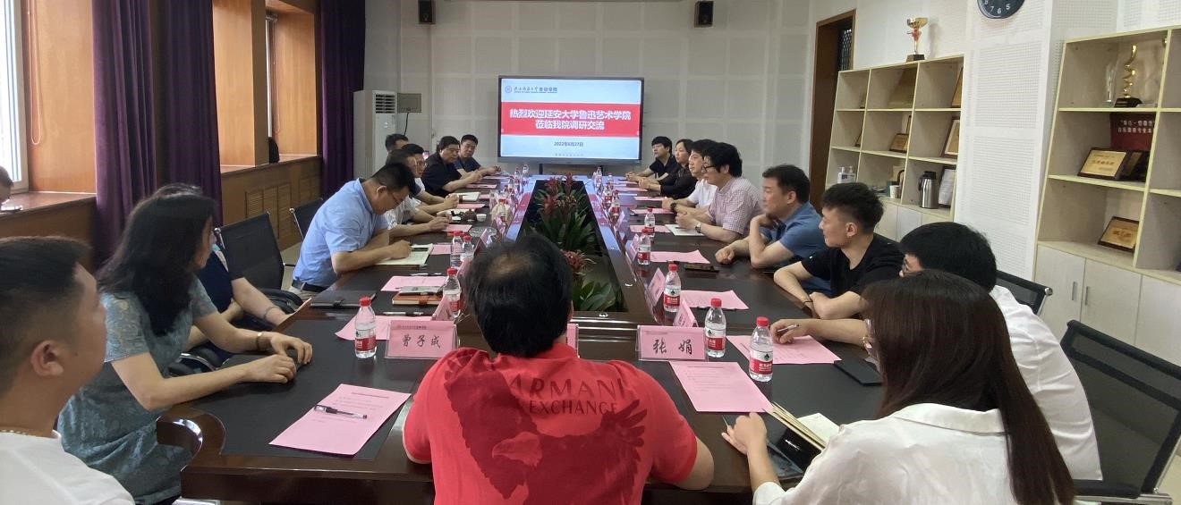 在陕西师范大学美术学院交流期间,美术学院经理韦兵、党委书记甄军军、副经理程永刚、江锦世、王晓燕等参与了座谈交流。韦兵代表学院对田大成一行表示欢迎,并介绍了师大美术学院的办学特色、团队建设等情况。