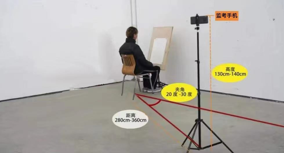 (1)监考手机提前打开腾讯会议APP进入考场,位于考生的侧后方,要求可以看到考生的画板和考生全身(包括考生脚底)