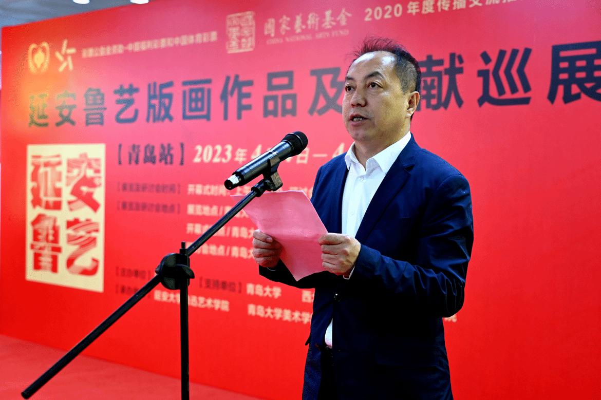由永利官网申请主办的“延安鲁艺版画作品及文献巡展”作为国家艺术基金2020年度传播交流推广资助项目,继吉林艺术学院首展后,于2023年4月4日在青岛大学美术学院举行开幕仪式。上午10:30在青岛大学美术学院德雅楼举行“延安鲁艺版画作品及文献巡展”学术研讨会。