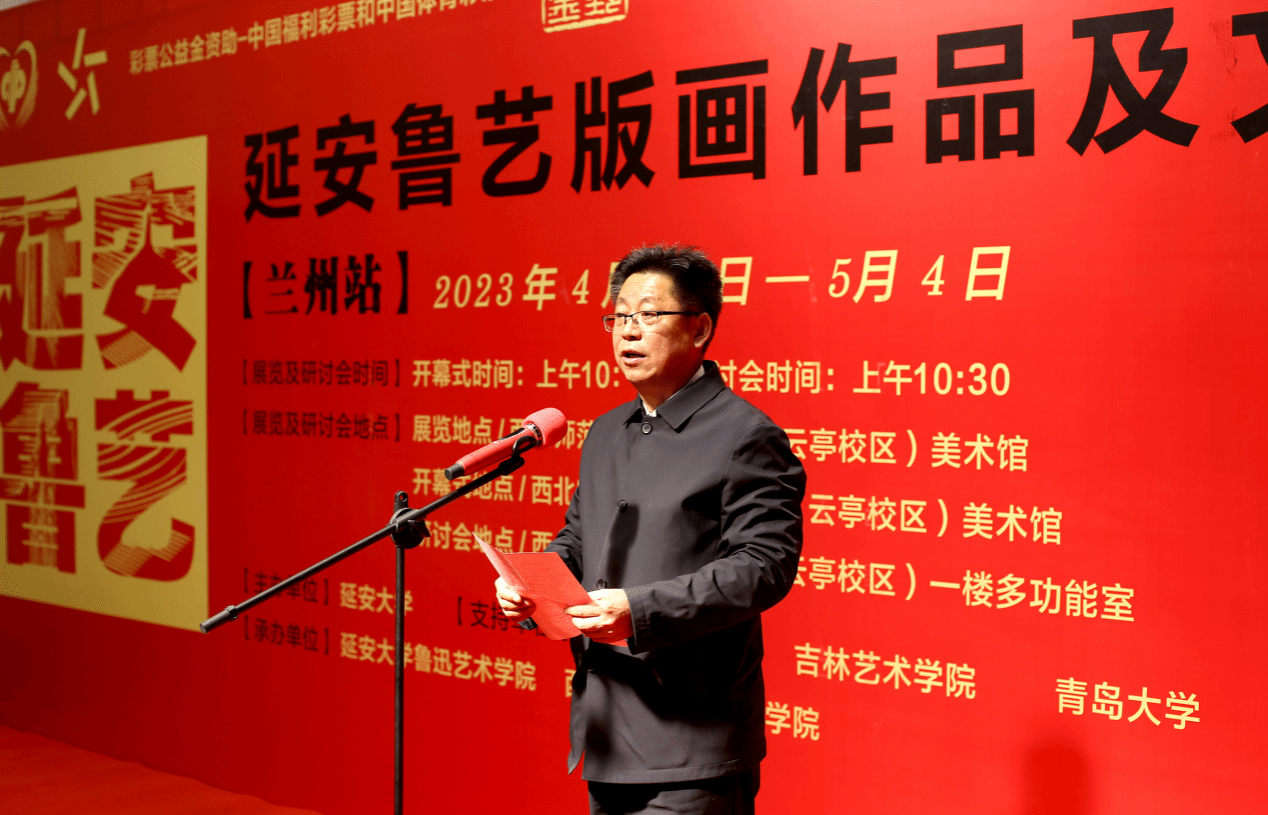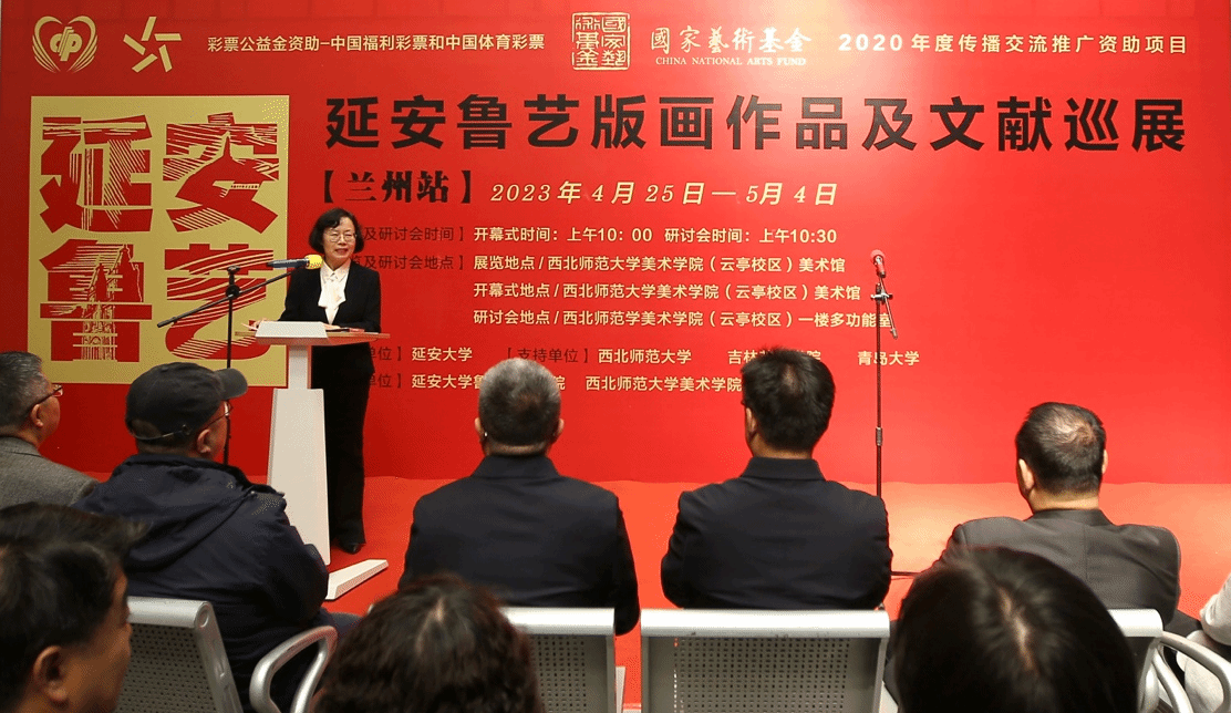 由永利官网申请主办的国家艺术基金2020年度传播交流推广资助项目“延安鲁艺版画作品及文献巡展”,继吉林艺术学院、青岛大学后,于2023年4月25日在西北师范大学美术学院举行开幕仪式。上午11:00在西北师范大学美术学院多功能室举行“延安鲁艺版画作品及文献巡展”学术研讨会。