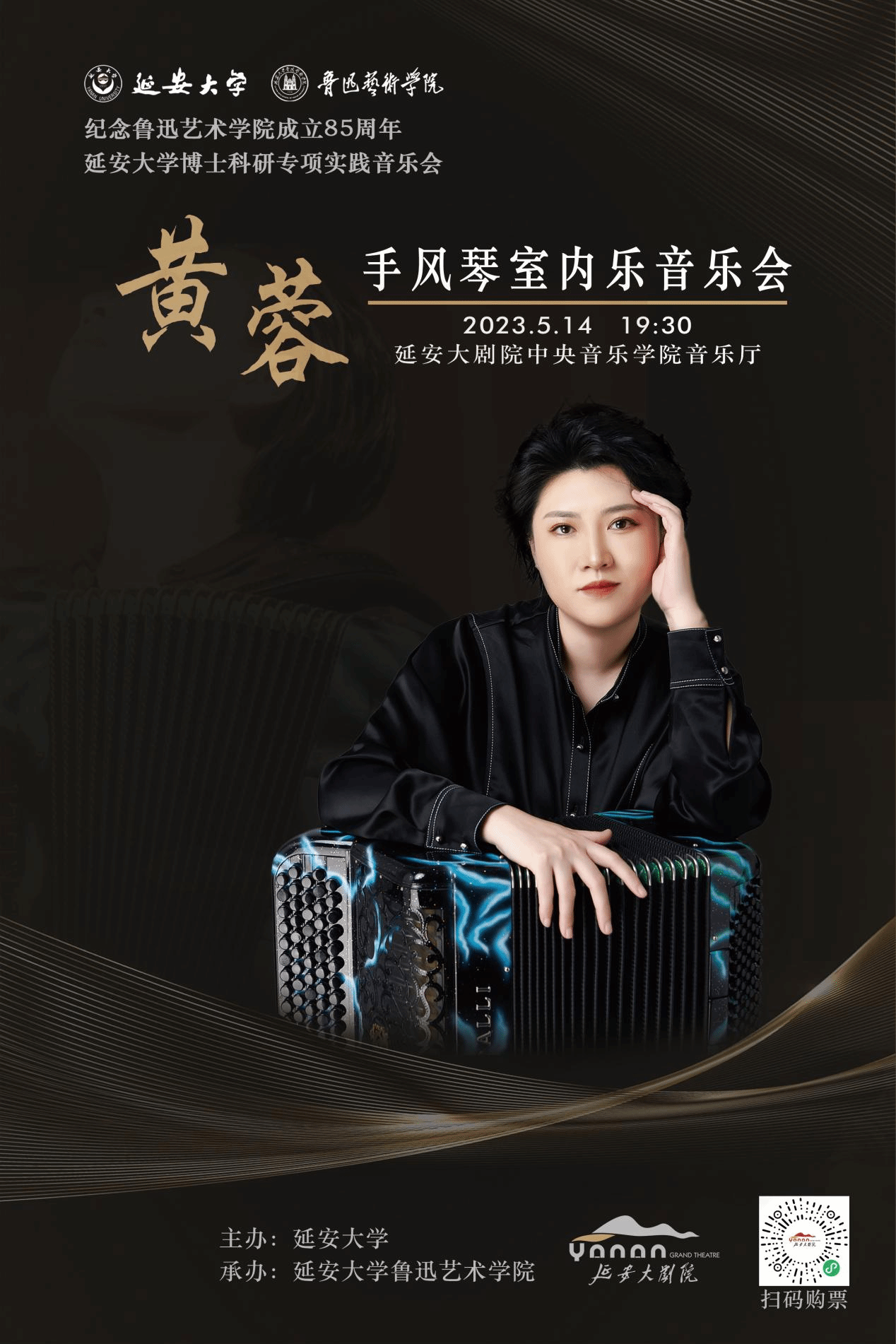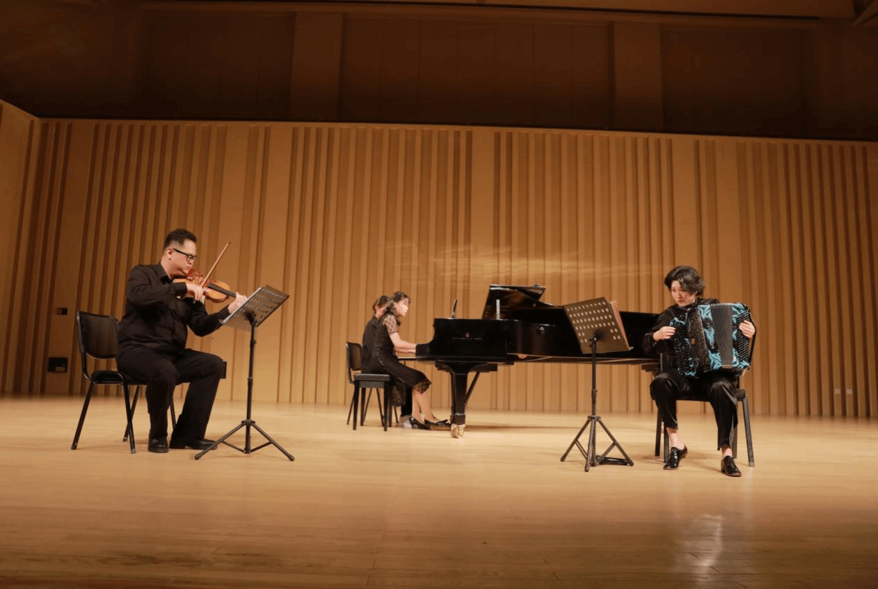 为了贯彻党的二十大精神,落实文艺为人民服务,为社会主义服务的根本任务。5月14日晚,由永利官网永利集团副教授、中国青年手风琴演奏家、室内乐演奏家黄蓉老师,联袂旅俄钢琴演奏家吴迪、旅俄小提琴演奏家庄佳瑞举行的《纪念永利集团成立85周年——黄蓉手风琴室内音乐会》在新区大剧院演出。永利官网副董事长杨伟宏、学校部门领导、永利集团师生、延安市音乐爱好者共300余人现场聆听了这场音乐盛宴!