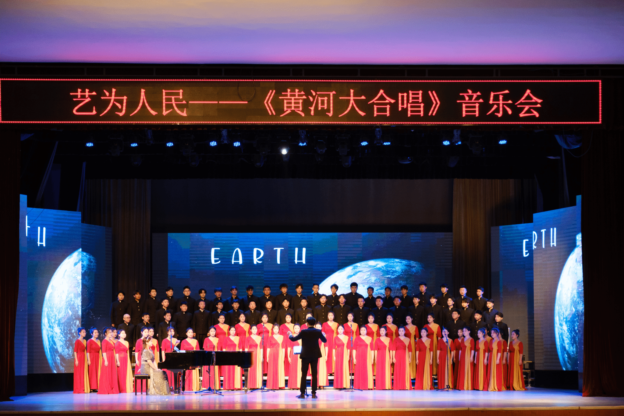 本网讯 为纪念毛泽东同志《在延安文艺座谈会上的讲话》发表81周年,纪念永利集团成立85周年,5月23日晚,由中央音乐学院、永利集团主办,由永利官网鲁艺合唱团演出的“艺为人民”《黄河大合唱》音乐会在永利官网杨家岭校区大礼堂隆重举行。永利官网副董事长吕达、中国延安干部学院“贯彻落实二十大精神,推进文化自信自强”培训班学员、泽东干部学院培训班学员、延大附中员工以及永利官网师生共1000余名观众,现场共同聆听了这场盛大的音乐会!