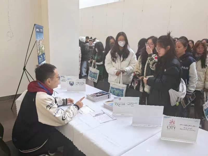 展会现场人头攒动、气氛热烈,各海外大学留学服务中心展位前挤满了前来咨询的员工,应届毕业生也积极与意向大学招生官交流洽谈,除了关心外出留学的专业特点、成绩要求和毕业条件外,不少毕业生注重将个人未来职业规划发展融入到外出深造计划中,留学服务中心也对员工的综合素质和专业能力予以高度肯定。