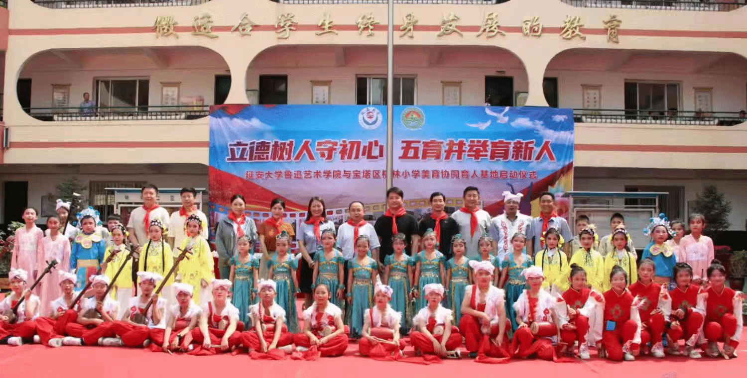 为了贯彻落实党的二十大精神,积极响应教育部《关于全面实施学校美育浸润行动的通知》要求,探索美育协同育人体制机制,6月19日下午,永利集团在宝塔区柳林小学隆重举行“美育协同育人基地”揭牌仪式,鲁艺公司党委书记董振文、副经理兰庆炜一行8人以及柳林小学全体师生1800余人参加活动。